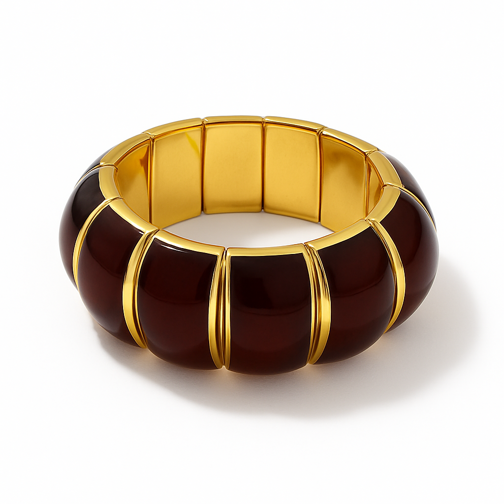 A bold, regal statement bangle crafted with rich gold plating and oversized teardrop-cut crystals. Each gem catches light effortlessly, creating a frosted winter sparkle that stands out in every setting. This stretch-style cuff offers a comfortable, flexible fit while delivering a luxurious, high-fashion presence. Perfect for holiday glam, winter nights out, or elevating any everyday look.